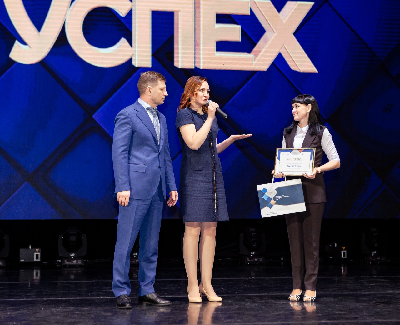 Награждал победителей на сцене губернатор Хабаровского края, Сергей Фургал. В своей приветственной речи он отметил, что хотел бы в ближайшее время провести встречу с победителями и номинантами премии «Бизнес-Успех» и обсудить дальнейшую совместную работу.