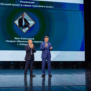 Иван Емельянов (Пекарня «Машенькины пироги», г. Хабаровск) победил в номинации «Лучший проект в сфере торговли и услуг». Машенькины пироги - вкуснейшие пироги по рецептам со всего мира. Это первая и единственная на данный момент франшиза пирогов на песочном тесте.В