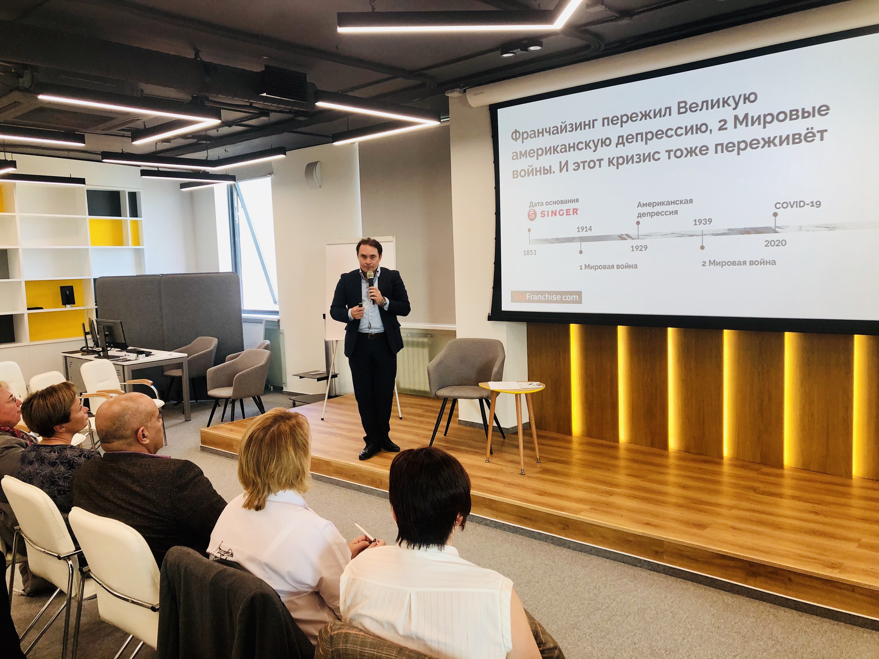Участники мероприятия прослушали семинар по упаковке франшизы от Василя Газизулина – основателя и управляющего партнёра TopFranchise.ru, члена Российской Ассоциации Франчайзинга, организатора Российской аллеи брендов на международных франчайзинговых выставках, руководителя розничной и франчайзинговой сети «Экспедиция». Василь рассказал о социальном предпринимательстве, перспективах и трендах франчайзинга в России, системе и регламентации франчайзинговой сети, правах, обязанностях правообладателя/пользователя, разобрал преимущества и недостатки технологии франчайзинга, алгоритм запуска франшизы, дорожную карту, особенности лицензионного договора, уплаты пошлин и подачи заявления в Роспатент.