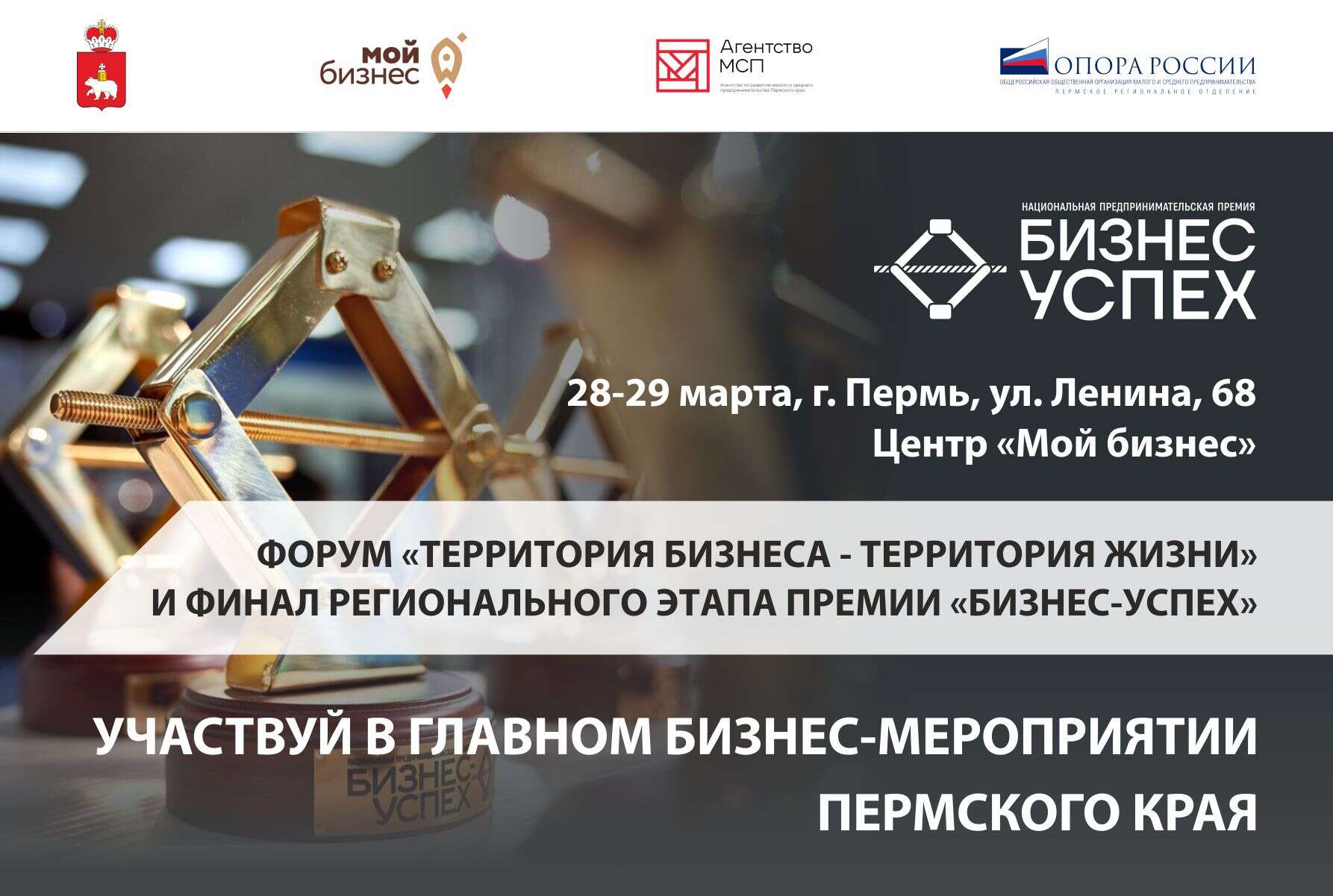 28-29 марта в Перми состоится региональный этап Национальной премии «Бизнес-Успех». Экспертное жюри выберет самые яркие проекты, а победители отправятся на масштабный финал в Москву. Заявки на участие в Премии принимаются до 17 марта.