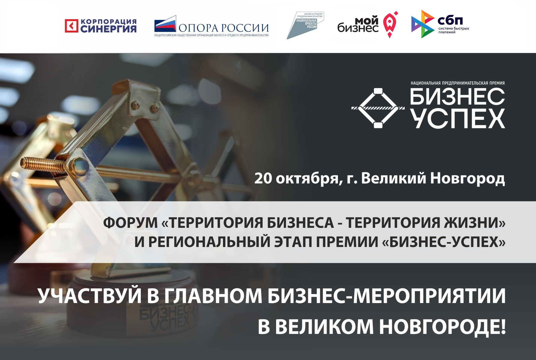 20 октября в Великом Новгороде, в рамках форума «Территория бизнеса — территория жизни», в центре «Мой бизнес» состоится региональный этап Национальной предпринимательской премии «Бизнес-Успех». К участию приглашаются представители малого и среднего бизнеса Новгородской области.