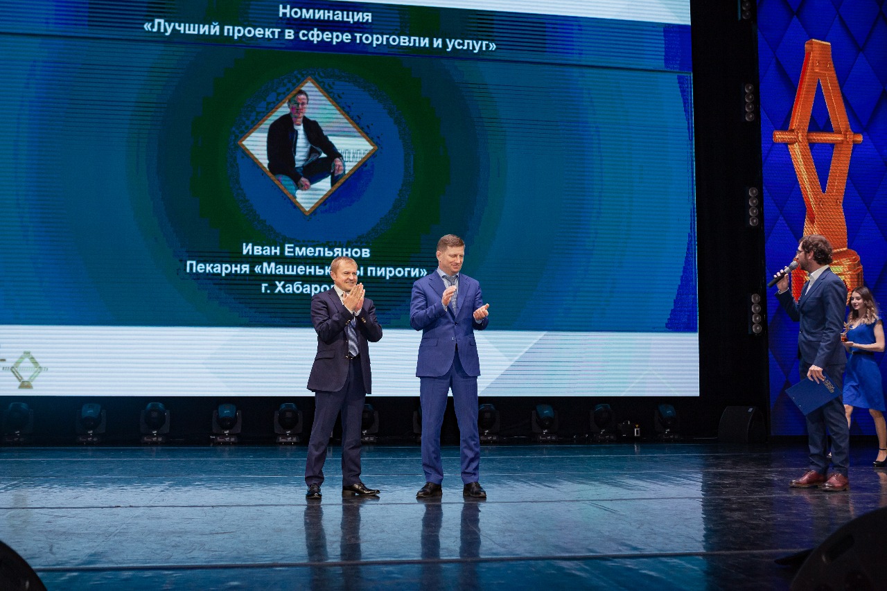 Иван Емельянов (Пекарня «Машенькины пироги», г. Хабаровск) победил в номинации «Лучший проект в сфере торговли и услуг». Машенькины пироги - вкуснейшие пироги по рецептам со всего мира. Это первая и единственная на данный момент франшиза пирогов на песочном тесте.В
