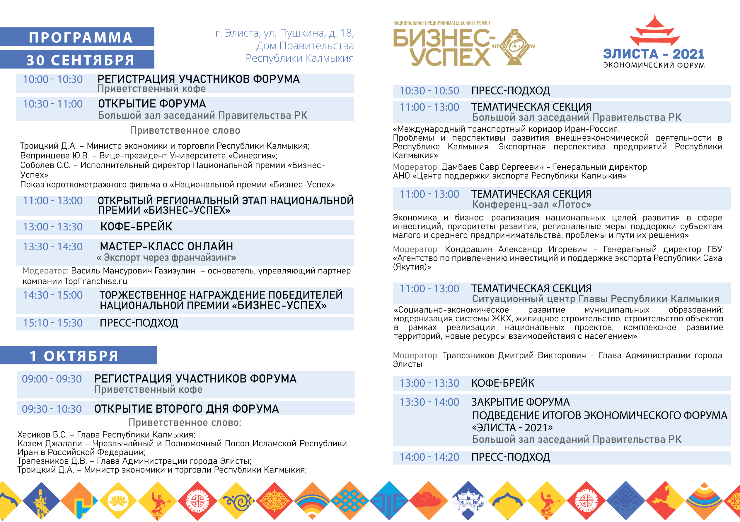 Место проведения: Большой зал заседаний Правительства Республики Калмыкия